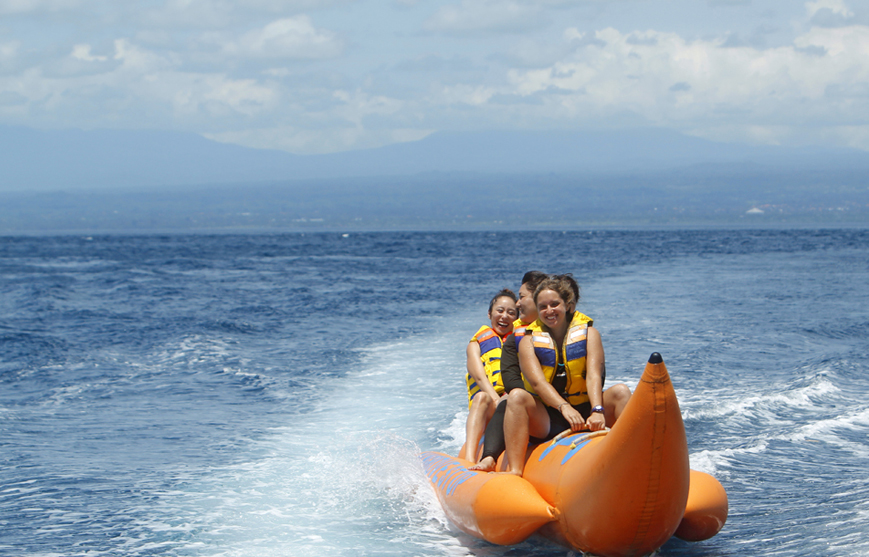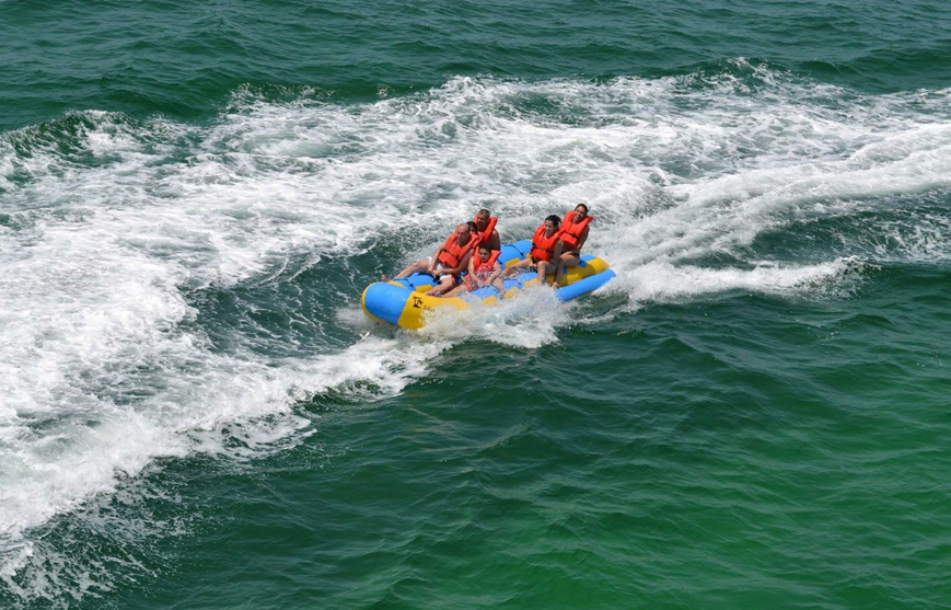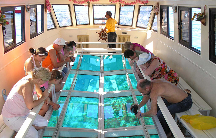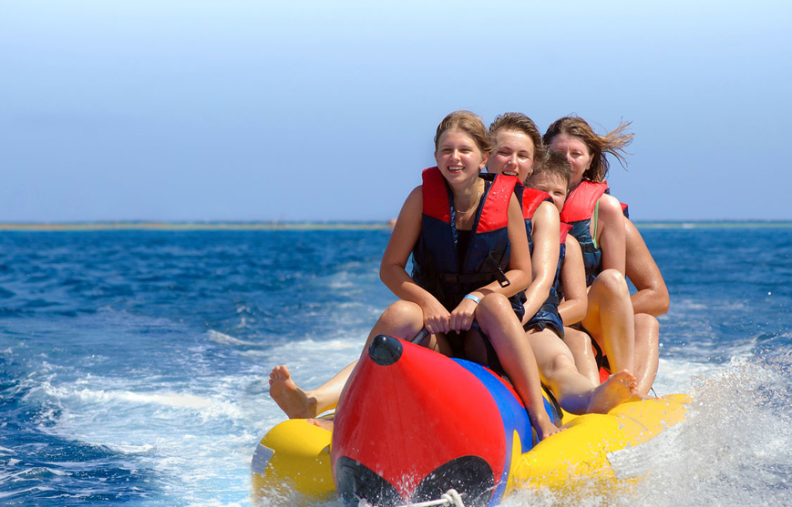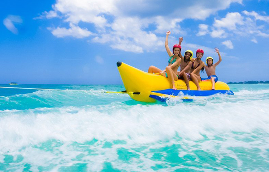 Celodenní zábavný výlet lodí - užijete si vodních atrakcí jako je jízda na banánu, jízda na širokém člunu vsedě nebo vleže za motorovým člunem,projiždka lodkou s proskleným dnem, odpočinete si na ostrově Utopia,nechybí ani šnorchlování na korálových útesech s mnoha různými druhy barevných ryb,malé rybaření.